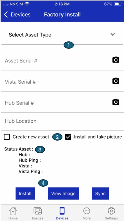 Enter or scan the serial number of the Hub (if applicable). This links the Hub to the asset and Vista device, enabling communication and data aggregation.