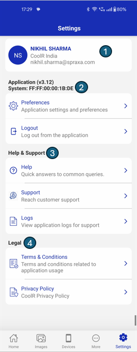 | 3 | Logs | Displays logs related to application usage for debugging or reporting issues. |