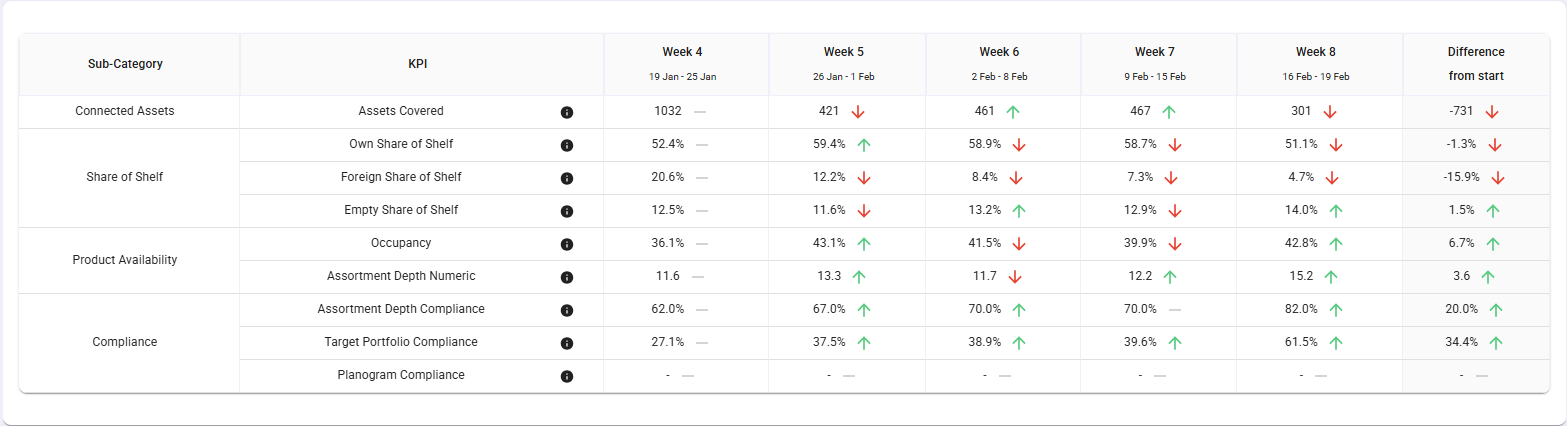 - Merchandising: Insights into the merchandising quality and fill-level of your assets.