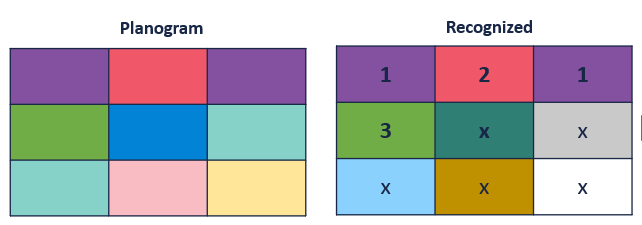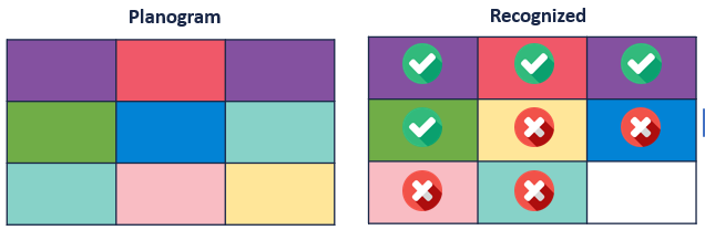 (Recognized Unique Products in Planogram / Total Unique Planogram Products) × 100