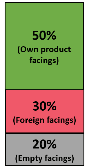 (Own Product Facings / Total Facings) × 100