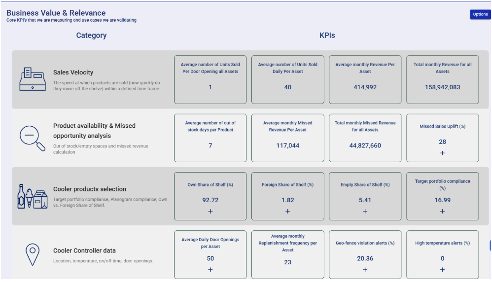 Shows the percentage increase in sales that could have occurred without missed opportunities. This is presented as an expandable card that allows users to explore missed sales data by product and outlet.