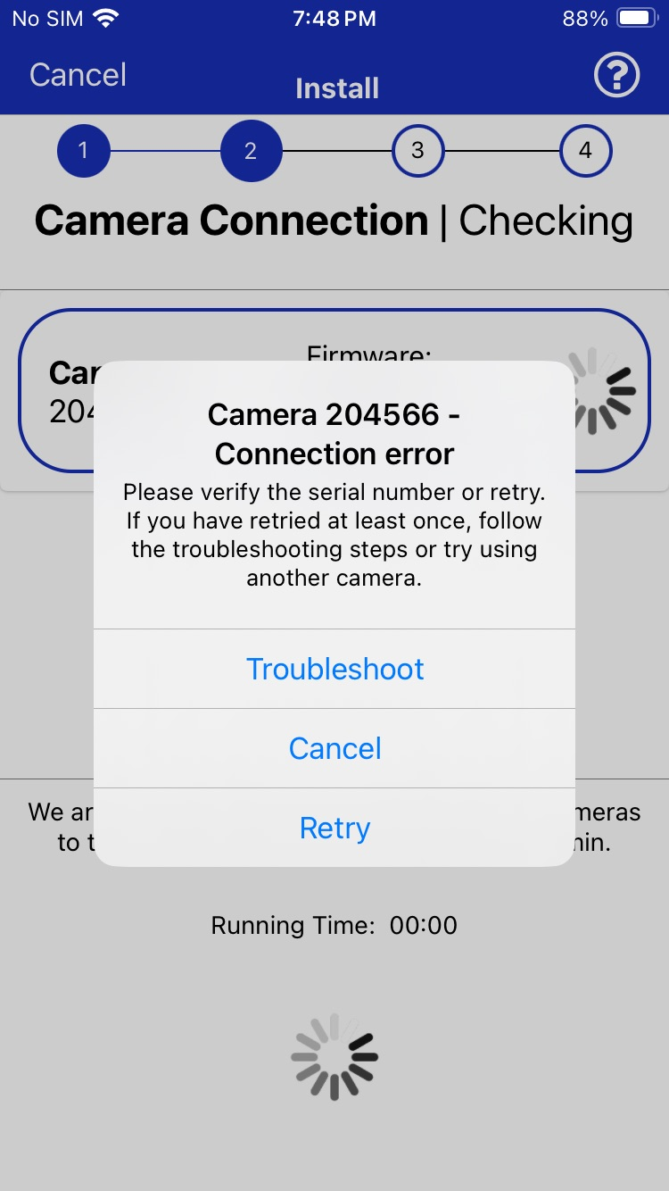 - The app will verify the camera's connection status. Ensure there's good connectivity before proceeding. This step might take a few minutes.
