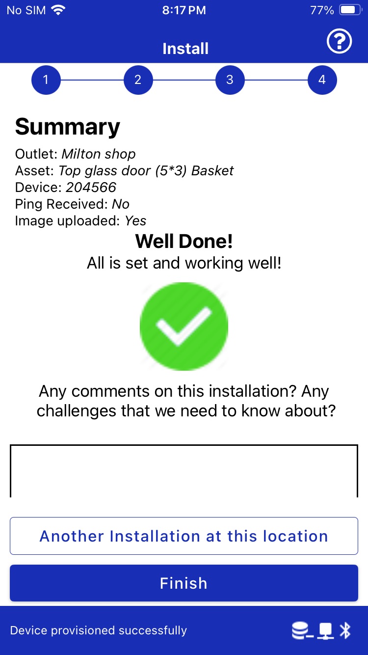 - If Outlet, Asset, and Planograms are not entered beforehand, installation time may increase from ~5 minutes to ~10 minutes