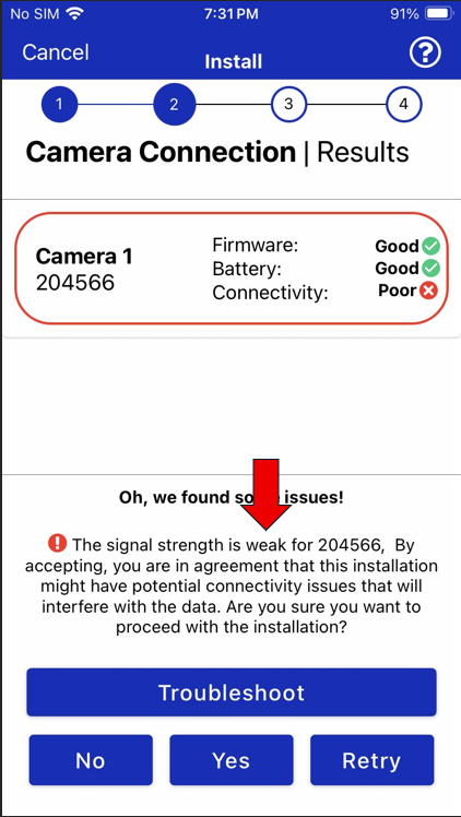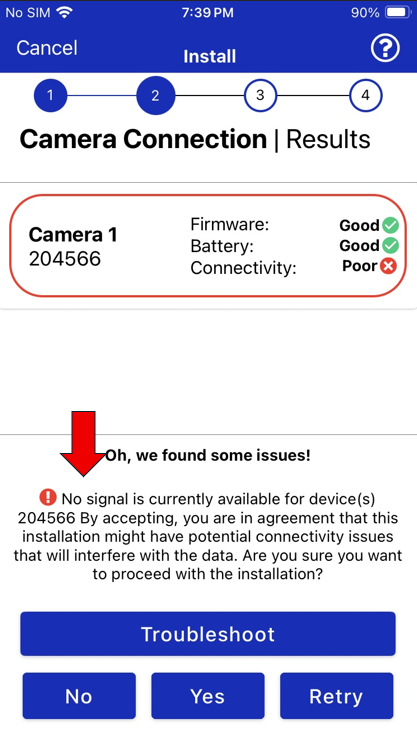 In some locations, you may not have cellular connectivity at all. In those cases, installation cannot be completed successfully.