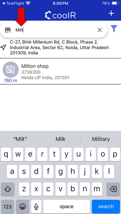 - If the location is not found, you can add the location. The "+" icon on the right side of the header allows you to quickly add a new outlet.